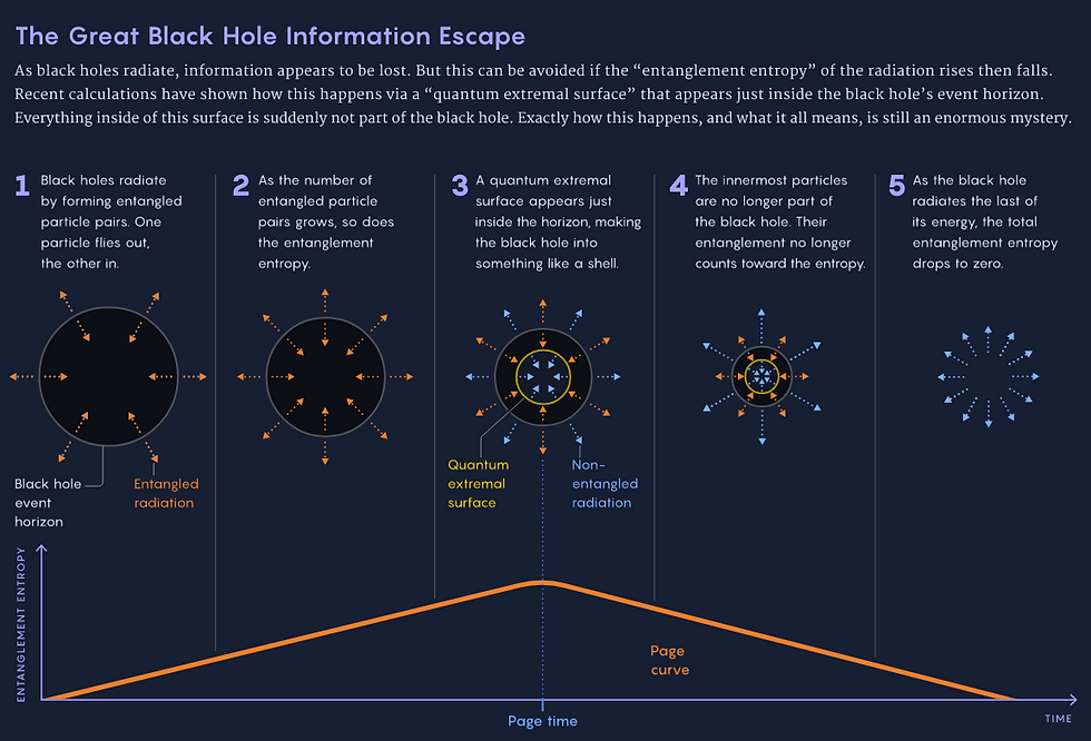 So, how does this connect to Hawking radiation? Well, remember that radiation carries away energy and mass from a black hole. In other words, it's a way for a black hole to lose some of the information that it's absorbed. But here's the rub: the radiation itself doesn't contain any information about what fell into the black hole. It's completely random and chaotic, with no way to reconstruct what got swallowed up in the first place.